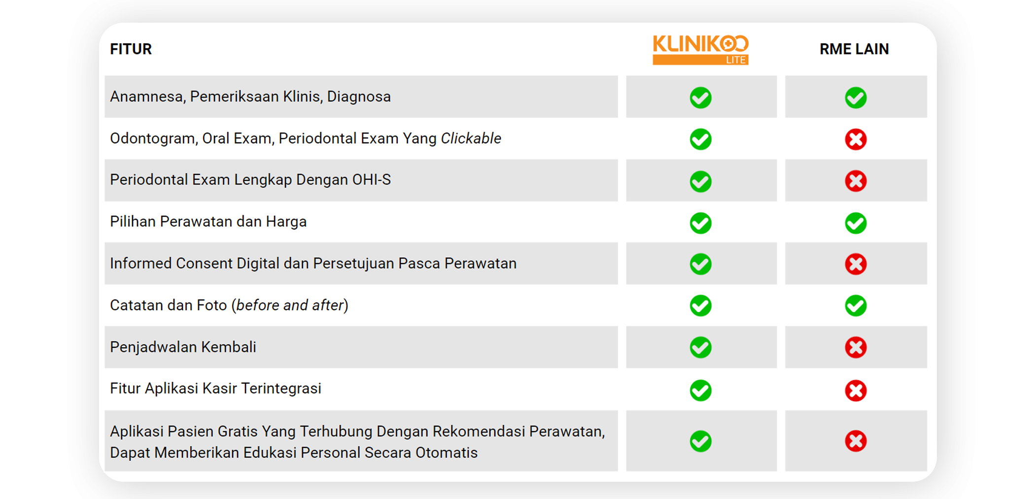 Perbandingan KLINIKOO LITE Dengan Aplikasi RME Lain